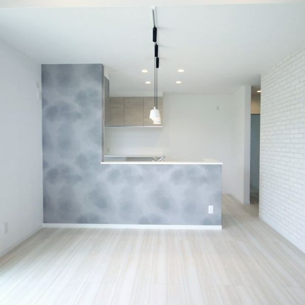 内外共にアクセントとなるようスクエア窓を配置しました。大屋根を採用したお家でリビング上部は吹抜となっています。アクセント窓からは明るい日差しが降り注ぎ、気持ちのいい空間で過ごせます。ナチュラルなテイストで色味を揃え、飽きの来ない色合いです。吹抜部分の構造梁にはインテリアとしての要素をもたせ木目調のクロスで敢えて目立たせるようにしています。2階の個室は将来的に間仕切れる大きな一部屋となっています。そのまま使い続けてもいいし、個室を増やしたい場合は簡単な造作でできるようになっています。大屋根を利用した小屋裏収納もあり、たっぷり収納があるお家です。