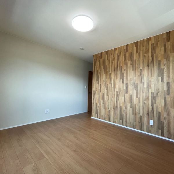 心地よい素材感を生かした、ぬくもりを感じられるナチュラルなスタイルのインテリア。キッチンとダイニングが横並びで全体を見渡せる間取りの為、空間のつながりをより感じられる構成となっています。和室の畳に淡色系の樹脂畳を使用することで、違和感なくLDKと馴染むように選定しました。ラフな雰囲気の木目調クロスを採用した寝室にはベランダが隣接している為、より明るく優しい雰囲気となるよう構成しております。グレイッシュな壁紙を使ったトイレや洗面室・脱衣室は、個性とトレンド感のある空間に仕上げました。